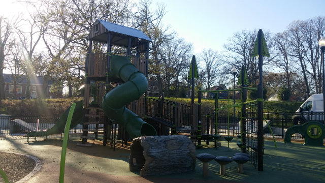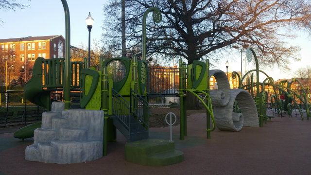 TAKOMA PARK PLAYGROUND: This is one of my favorite playgrounds because it has big slides, a lot of space to play tag, a spinning tub, and swings.