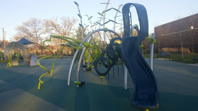 Christina’s notes: This is one of only two playgrounds on the list with a parking lot. And, as Monty mentioned, it has four pieces of outdoor exercise equipment by HealthBeat.