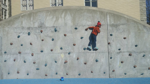 There’s only so much that an adult can really tell about a playground. So to find the city’s best offerings, we brought in a guest contributor: my eight-year-old son, Monty. Because who’s better qualified to review playgrounds than a 3′ 10,” 40-pound second grader who loves to jump around? When it comes to playgrounds, you’ll notice that Monty has a few necessities: monkey bars, swings, climbing walls, long slides, and anything that spins. He also thinks playgrounds are prime real estate for playing a game of tag. Below, you’ll find out which playgrounds suit Monty. If the kid missed anything important, I’ve added some comments after his reviews. — Christina Sturdivant