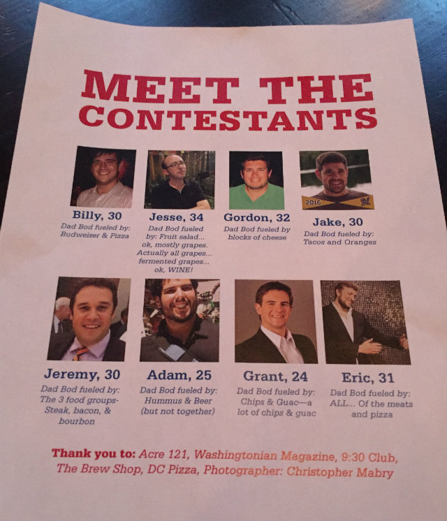 The Dad Bod Pageant, hosted at Acre 121 by husband and wife duo Vanessa and Neal McDonald, was created as part of the Leukemia & Lymphoma Society Man & Woman of the Year campaign (Mrs. McDonald, a marketing manager at Washingtonian, is a candidate for the honor this year).