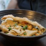 Host chef Matt Adler of Osteria Morini went all strategic, tossing out authentic meatballs from the mound. Simple and straightforward, made of prosciutto and mortadella, topped with shredded parmesan and cradled in housemade pasta, Adler quipped “What’s meatballs without pasta? A travesty!” His goal for the event was to do something fun for friends, family, and fans for the home opener, saying, “”We wanted to throw a party where we brought together a bunch of our friends to showcase their talent. We tried to put together a very diverse group showcasing many types of cuisine, Greek, Japanese, Korean, and more.”