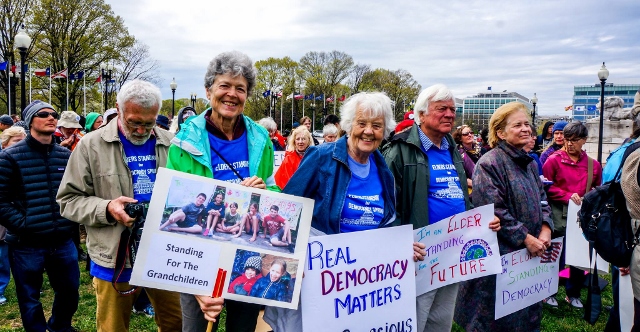 “As ‘elders’ we have a moral imperative to care for and speak for future generations. We aim to use our wisdom and life experience to guide our actions, and stand together to create our legacy and reclaim our democracy,” they write.