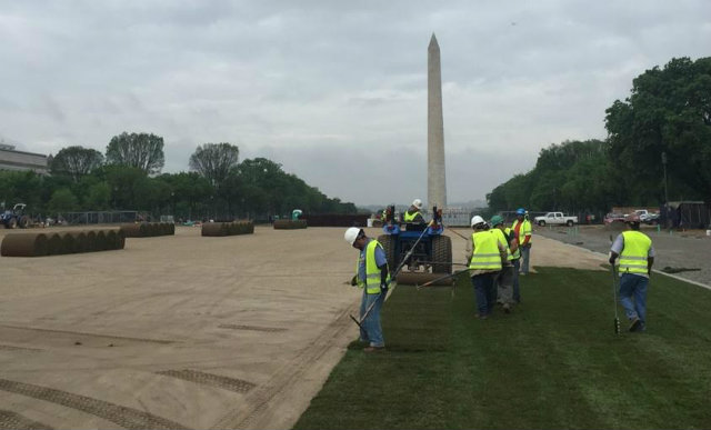 The bald patch on the National Mall between 7th Street to 14th Street will soon be sprouting lush new grass.