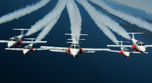 “The flyover highlights the bond between Canada and the United States and the ongoing preparations for celebrations to mark Canada’s 150th anniversary in 2017,” the Snowbirds said in a release.