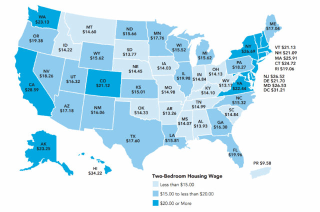 Today’s statistics come courtesy of the National Low Income Housing Coalition, which released its annual “Out of Reach” report. Whereas last year, Washingtonians needed to earn $28.04 to afford a two-bedroom, this year that figure jumped up to $31.21.