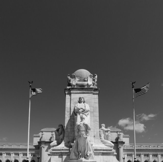 According to the Smithsonian’s art inventories catalog, the Knights of Columbus began lobbying for a memorial to Christopher Columbus in 1906, and Congress obliged a year later with $100,000. American artist Lorado Taft created the marble sculpture, which was dedicated in 1912 in the aptly named Columbus Circle.