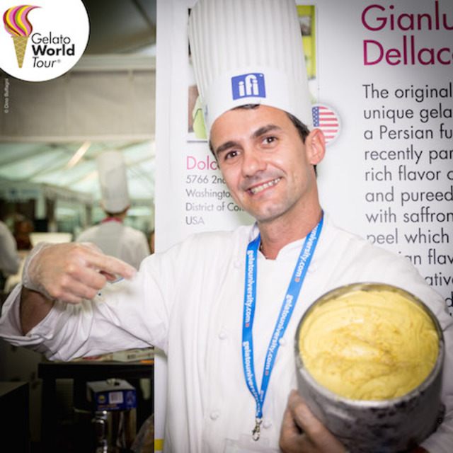 Gianluigi Dellaccio of Dolci Gelati shows off his winning Saffron Pistachio gelato.