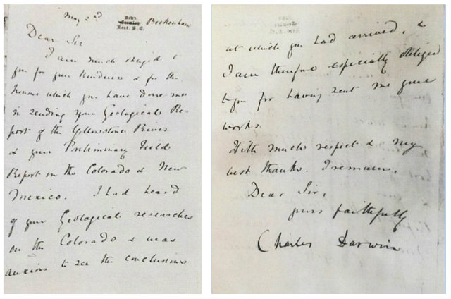 Darwin wrote the letter to American geologist Ferdinand Vandeveer Hayden, thanking him for sending two studies. It reads: