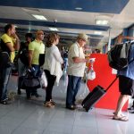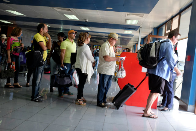 Miami-bound passengers have their tickets checked as they prepare to board a charter plane at José Martí International Airport on March 1, 2015 in Havana. (Photo by Joe Raedle/Getty Images)