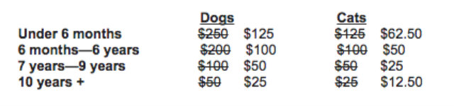 It’s raining cats and dogs at the Washington Humane Society-Washington Animal Rescue League. In an effort to jumpstart more adoptions, the organization is slashing adoption fees by half on Saturday and Sunday.
