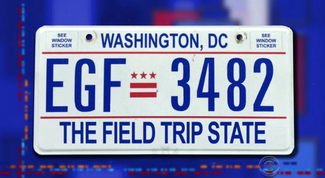 Despite what he deems slim odds, Colbert is nothing if not generous. Just in case we become the 51st star on the flag, he has some ideas for our new flag, motto, and license plate. I mean, I guess “The Field Trip State” is better than “Taxation Without Representation,” so long as we have representation.