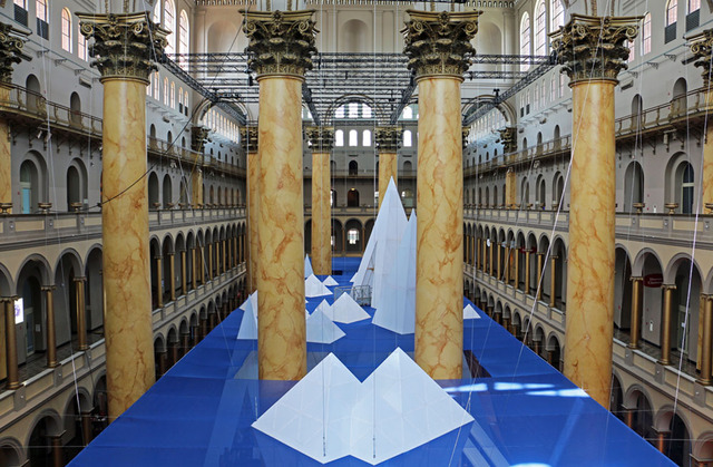From July 2 through Labor Day, the museum’s cavernous great hall will be home to ICEBERGS, an interactive exhibit comprised largely of triangular structures designed to imitate the look and feel of nature’s chilliest land masses. Outfitted with a slippery slide and balcony overlook, the installation provides a comfortable simulacrum of winter during D.C.’s most sweltering months.