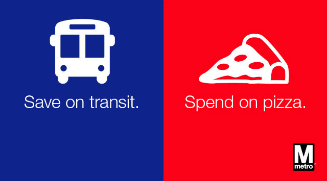 One of Metro’s advertisements promises that students will be able to spend money otherwise reserved for transportation on more college-y expenses, like pizza.