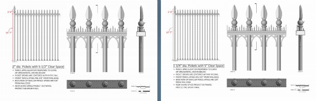 The second option “provides an appropriatehierarchy of ornamental and security elements, and limits the visual weight of the fence