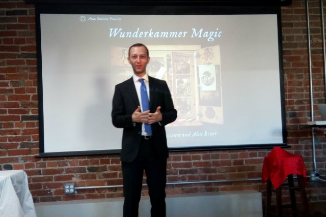6:24 p.m.: As I walk into The Loft in Chinatown for “a very special evening of Wunderkammer Magic” on Thursday I’m still not sure what I’m about to see. Is it a lecture? A magic show? Neither? Both?