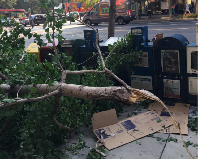In preparation for a severe storm, the National Weather Service told folks yesterday afternoon to take cover because “storms rolling through the DC metro have a history of knocking over lots of trees; very dangerous.” Hours later, District residents captured photos of downed trees and light posts that toppled over on sidewalks, in parks, and in the middle of streets.
