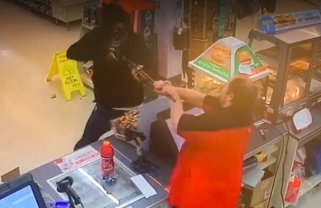 A would-be robber in Frederick, Md. didn’t know what was in store for him when he tried to hold up a 7-Eleven cashier. When the suspect pointed a rifle in his face, the store clerk wrestled the weapon away, causing the man to flee. The Frederick News-Post posted a video of the incident, which occurred on July 12.