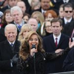 U.S. President Barack Obama greets singer Beyonce after she performs the National Anthem during the public ceremonial inauguration. (Photo by Rob Carr/Getty Images)