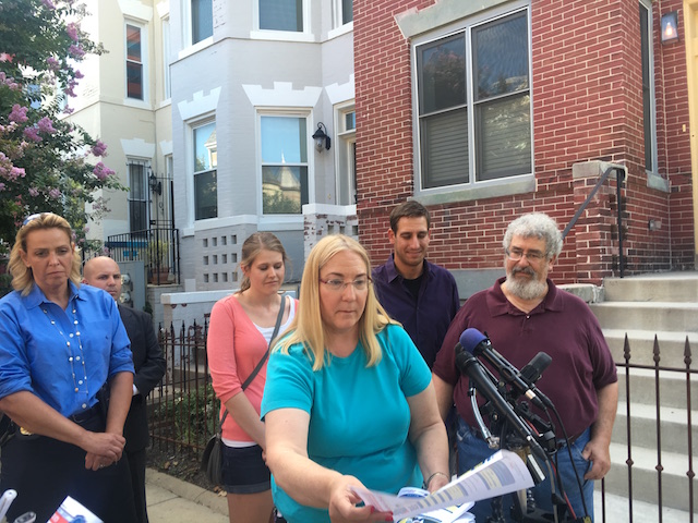 (From L to R) D.C. Police Chief Cathy Lanier, Seth Rich’s girlfriend Kelsey, Mary Rich, Aaron Rich, and Joel Rich at the scene of the crime in Bloomingdale. (Photo by Rachel Kurzius)