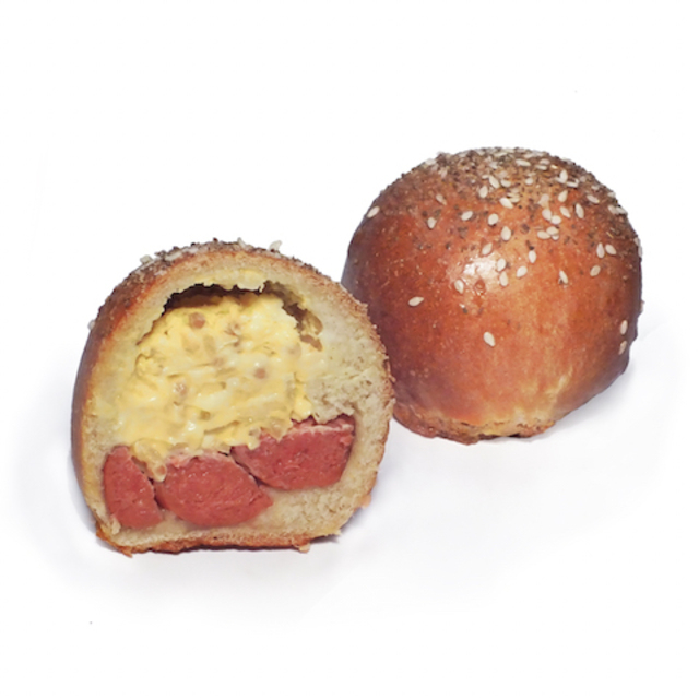 This form of carby delight may have originally been conceived by Momofuku Milk Bar, which featured Bagel Bombs on its menu way back in 2008 at the original shop, in New York City’s East Village. A representative from Momofuku told us that the reception to the Bombs has been positively on fire, and they’ve had to make the goodies around the clock at the Milk Bar bakery founded and owned by Christina Tosi. The current fave is the Ballpark Bomb, according to the Momofuku rep, describing it as“a mash-up of popular stadium snacks, Milk Bar-style. It has housemade honey-mustard cream cheese and sliced hot dogs nestled inside soft pretzel dough, topped with kosher salt, sesame seeds, and celery seeds.”