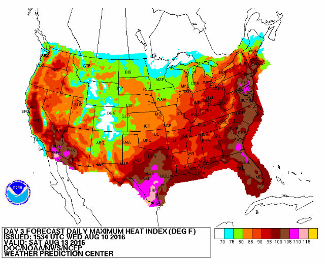 Steamy air is gearing up to punch you in the face, with heat indices (the way the temperature feels when taking into account the heat and humidity) between 100 and 105 degrees from Thursday through Tuesday. And all that heat and humidity will lead to storms that are likely to involve heavy rainfall, and possibly flash flooding, according to NWS.