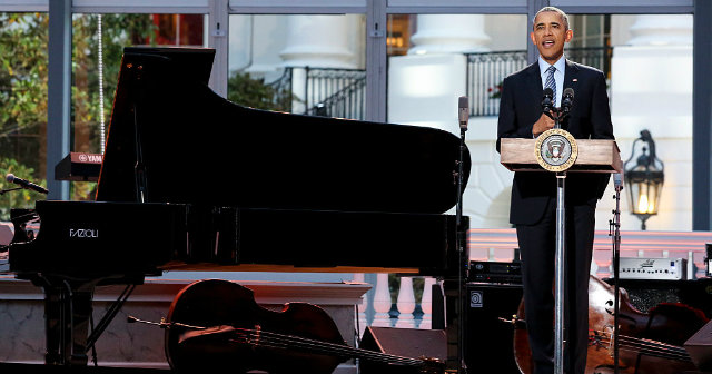 President Barack Obama delivers remarks at the International Jazz Day Concert on April 29, 2016. (Photo by Aude Guerrucci-Pool/Getty Images)