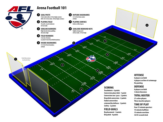 The AFL is finishing up its 29th season this year with eight teams. The District’s will be the fourth team on the East Coast, and it will also be the city’s first indoor football team since the D.C. Armor played in the American Indoor Football Association in 2009. Here’s a handy primer on the rules of arena football for new fans.