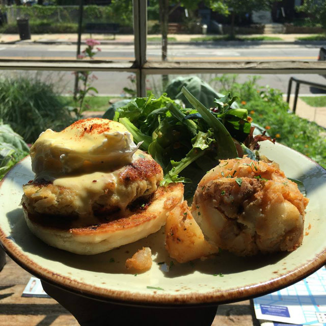 Maryland Benedict with crab cakes at Brookland’s Finest. Photo via