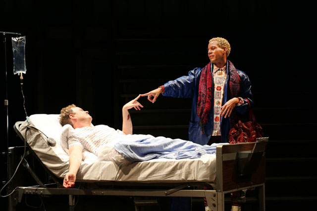 As is traditional for productions of Angels, performers weave in and out of multiple roles, sometimes swapping sexes in the process. A symbolic move that looks critically at gender, the technique also displays this cast’s versatility. Gilbert is equally at home playing a schizophrenic housewife and a young, ambitious male political operative. Dawn Ursula morphs from concerned nurse to chipper real estate agent to disturbed homeless man with finesse. One quibble: Sarah Marshall’s heavily-accented rabbi can be tough to understand.
