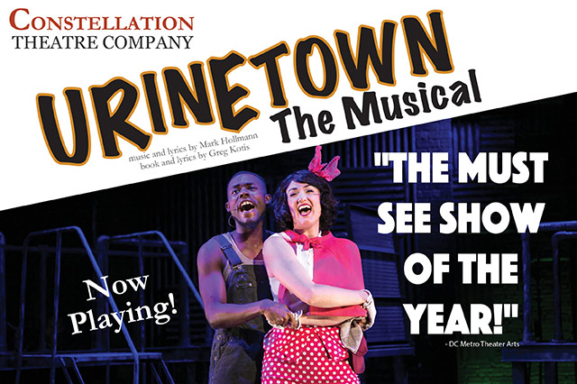 URINETOWN is an outrageous musical comedy about the people’s revolution against a greedy corporation and corrupt politics, complete with an environmental disaster, star-crossed lovers and a live orchestra. It’s the winner of three Tony Awards, including Best Book and Best Score—you won’t want to miss it.