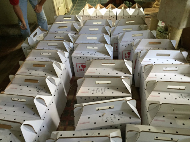 Cats and kittens in carriers awaiting transport to the shelter. Photo courtesy of Fairfax County Police Department.