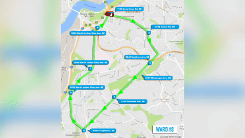 In Ward 8, the route takes the form of a loop. It starts at Good Hope Road SE at the intersection with Martin Luther King Jr. Ave., then turns onto Naylor Ave., followed by Southern Ave. on the border of Maryland, before turning onto South Capitol Street and then Martin Luther King Jr. Ave. to begin again. Like the Ward 7 shuttle, it will also operate during the work week from 9 a.m. to 5 p.m.