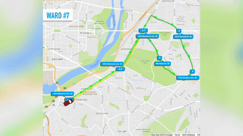 The Ward 7 route begins at Minnesota Ave SE at Good Hope Road SE, and takes Minnesota northeast until making a turn onto Benning Road NE, followed by Southern Road SE and looping around Ridge Road SE before reconnecting with Minnesota Ave. at East Capitol. It will be in operation Monday through Friday, from 9 a.m. to 5 p.m.