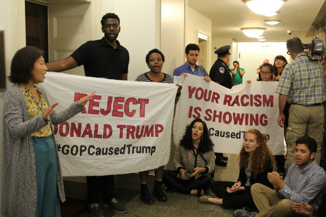 “For decades now the Republican Party’s electoral strategy has played on voters’ fears and prejudices,” said Waleed Shahid, founder of All Of Us 2016, a new campaign that’s hosting the sit-in. “They use coded racial appeals to divide us. They point the finger at immigrants, Muslims, black youth, and anyone else they can scapegoat. And while we’re blaming each other, a ruling class of oligarches and billionaries have been rigging the system to benefit only themselves.”