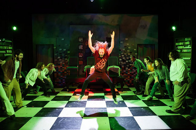 Be Awesome brings a lot more to the table than just music, though. The level and diversity of raw talent on display is so consistently impressive. Scenes contain everything from puppetry work to dance to juggling and even live music; Radiohead’s “Creep,” Des’ree’s “You Gotta Be,” and KRS-One’s “A Friend” are all performed on stage. Meanwhile, each of the cast of 10 plays a number of different characters between scenes with a dizzying number of quick costume changes to match. Flying V has always been a company that prides themselves on the technical and physical skill of their actors, and that skill helps elevate the story to brilliant heights.