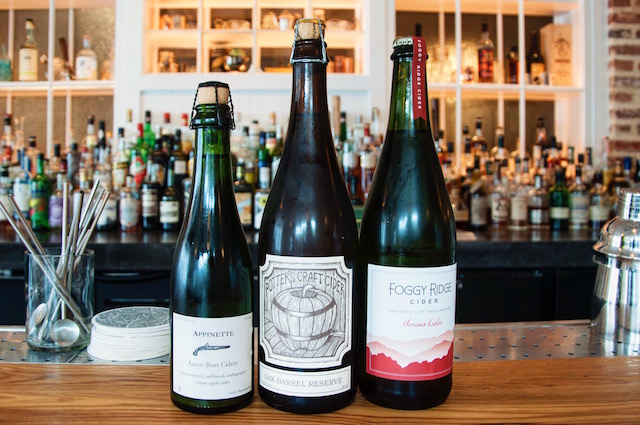 A selection of bottled ciders at The Dabney, including pioneer Foggy Ridge Cider (Photo by Emelyn Rude/DCist)
