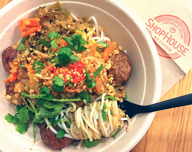 SHOPHOUSE: Though this might technically be the “Chipotle of Southeast Asian food,” that description undersells just how wonderful the food is. No disrespect to one of the O.G. fast casual chains, but the D.C.-based ShopHouse greatly surpasses its parent company. The food is fresh, the Southeast-inspired spice combinations are genius. The set-up is similar to Chipotle in that you point at layers that you’d like added to your bowl. There are delicious meats (and tofu), complex curries, vegetables that add tartness and fire, and all of this goes atop your choice of rice, greens or noodles. My favorite combo is the pork & chicken meatballs on noodles with charred corn, green curry and green papaya slaw. (But really anything with the pork & chicken is golden.) —Emma Gallegos