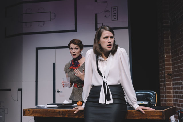 Before rehearsals started, Rhea was worried that the show landed outside of her wheelhouse (she usually doesn’t do scripts with such a bitingly satirical edge). That fear didn’t appear to influence the product; her direction funnels Keegan’s talent right where it needs to go. The unconstrained fury of LeTourneau’s Eliza proves deeply cathartic against the comically disturbing piggishness of Stu (Peter Finnegan) and Weber (Stephen Russell Murray), but Rhea knows when to dial it back.