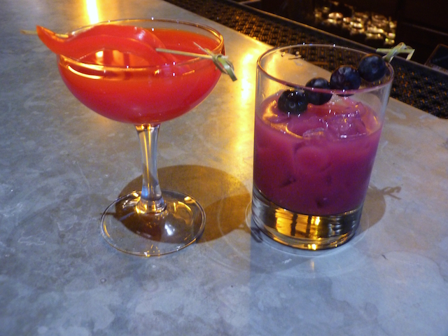 Rye Bar at the Rosewood Hotel (1050 31st Street, NW), for example, has upped the ante with cocktails sporting bold hues from natural ingredients. The Republican drink, Thyme To Decide, is a Hendrick’s gin coup drink that manager Diego Zeballos says gets its “deep reddish color from blackberries.” It’s very floral with a little St. Germain elderflower liqueur, cucumber notes from the gin, and a thyme sprig garnish. “This is a classic gin cocktail that’s for older drinkers,” says Zeballos, referencing the demographic that traditionally comprised the base of the Republican Party.