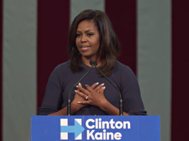 She turned to the story of a child to drive it all home. A six-year-old boy told his mother that he though Clinton would win because “the other guy called someone a piggy. And you can’t be president if you call someone a piggy.” Obama recounted. “Even a six-year-old knows better. A six-year-old knows this is not how adults behave, it’s not how decent human beings behave, and this is certainly not how someone who wants to be president of the United States behaves.”
