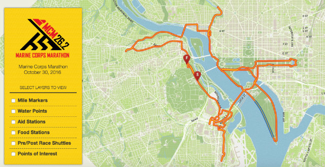 The 2016 Marine Corps Marathon Route (Courtesy of MCM)