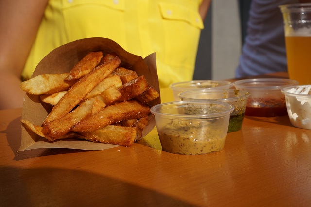 Each sauce makes a worthy accompaniment to Fry Brothers’ thick fries, which have both a crunchy exterior and a velvety interior. That’s not by accident either, as Lubens and Chiacchiaro did extensive experimentation with a small electric kitchen fryer, evening using a spreadsheet to document everything from type of potato, frying time, oil and temperature.