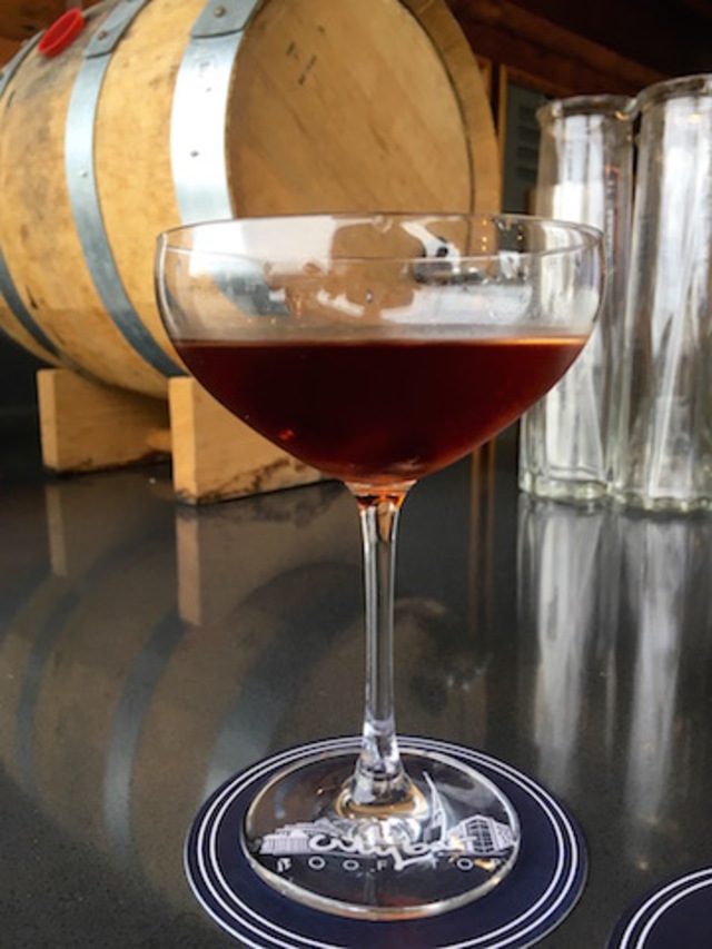 When does a gin drink become a whiskey drink? When you age it in oak. Gin can never technically become whiskey because of its herbal infusions, but it picks up whiskey flavors from the barrel’s wood and so becomes closer to whiskey over time. That’s the idea behind City Bar’s (400 E St., SW) barreled Martinez. The Martinez is the sweet vermouth forerunner of the Martini and a close cousin to the Manhattan. Aging Bombay Sapphire (with bitter Carpano Antica vermouth and a hint of Grand Marnier) produces a whiskey-like cocktail with only subtle gin notes and an oaky roundness that one doesn’t find in dry gins. If you go to the rooftop bar of the Hyatt Place in Southwest, don’t miss this beauty for $15 dollars.