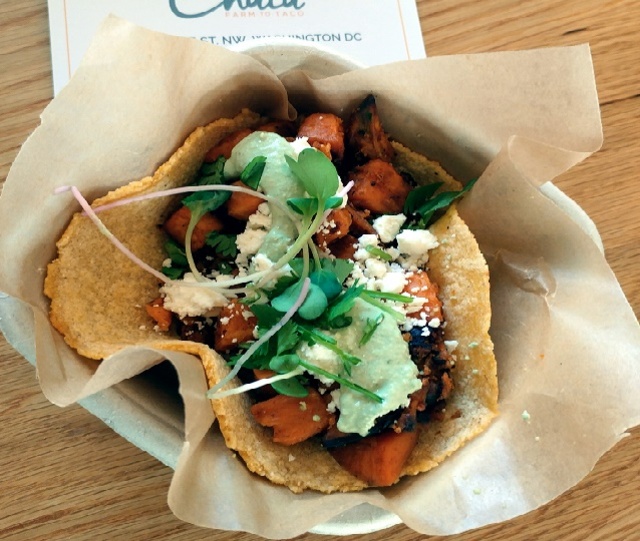 When it’s time for lunch, head over to Chaia (3207 Grace St. NW) in Georgetown for chipotle sweet potato hash tacos with arugula pumpkin seed salsa, feta, and cilantro. Situated in a cozy townhouse—formerly a wood-working studio—Chaia serves all vegetarian/vegan “farm-to-taco” fare. The menu is based on what their farmer providers are harvesting at the time—which, for now, means pumpkin.