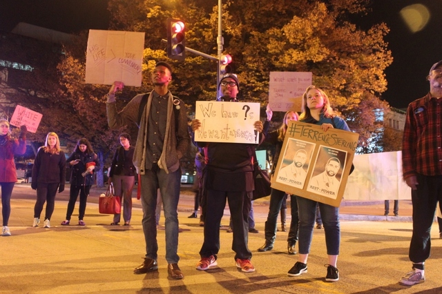 Every week since the fatal police shooting of an unarmed black motorcyclist nearly two months ago, protesters have taken to the streets. Last night was no exception, with around 60 people shutting down several downtown thoroughfares. But in the wake of reports of a grand jury investigation into the death of Terrence Sterling, protesters expressed both hope and impatience.