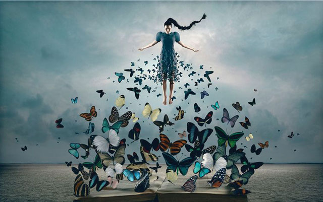 This is Herbstein’s first exhibit in Washington, and she prefers not to interpret her work, “because I might like your interpretation better than mine!” Still, she shared her thought process for a photo titled, “To be able to see the book of my life” (which you can see at the top of this post). “When you see the big picture, you understand that you have everything.”
