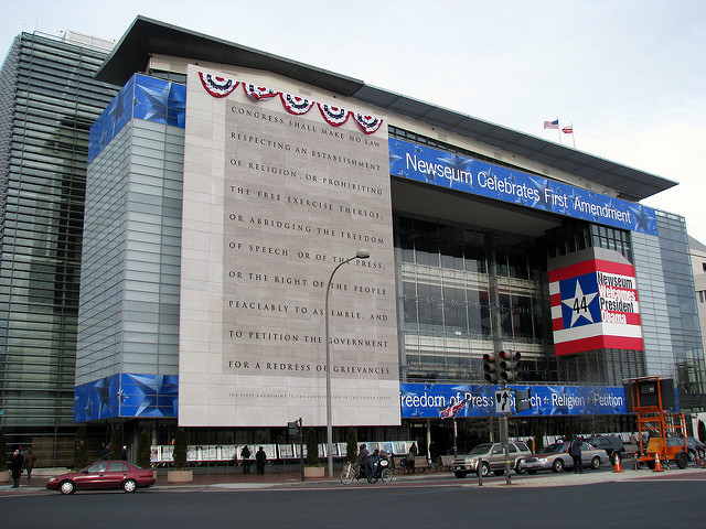 The Newseum opened its downtown location in 2008, with a mission to “promote, explain and defend free expression and the five freedoms of the First Amendment: religion, speech, press, assembly and petition,” according to Williams.