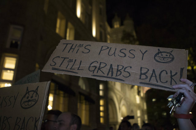 A woman carried this sign to the Trump International Hotel on the night after the election. (Photo by Alex Edelman)