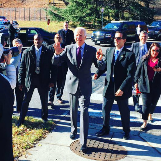 Holding his own aviators, Biden strolled up to the several dozen who had gathered outside the Naval Observatory to thank him for his service. “It has been the honor of my life serving, I really mean that,” the vice president told the group to cheers.