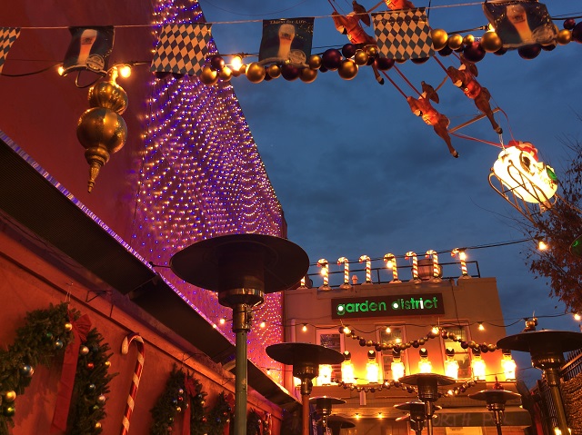 Tad Curtz and his team at Garden District (1801 14th St. NW) are betting on it. Now through December 18th, the outdoor bar and barbecue joint is re-imagined as a Christmas beer garden. Think Bavaria, the southern German region that does Christmas like no other, but add propane heaters, piped-in American holiday tunes, and an impossible-to-miss assortment of cheery decor. We’re talking 10,000 twinkling lights, over a quarter mile of tinsel, and a light-up plastic nativity scene. Alas, for fans of “The Twelve Days of Christmas”, there are currently only nine drummers drumming atop the second floor overhang.